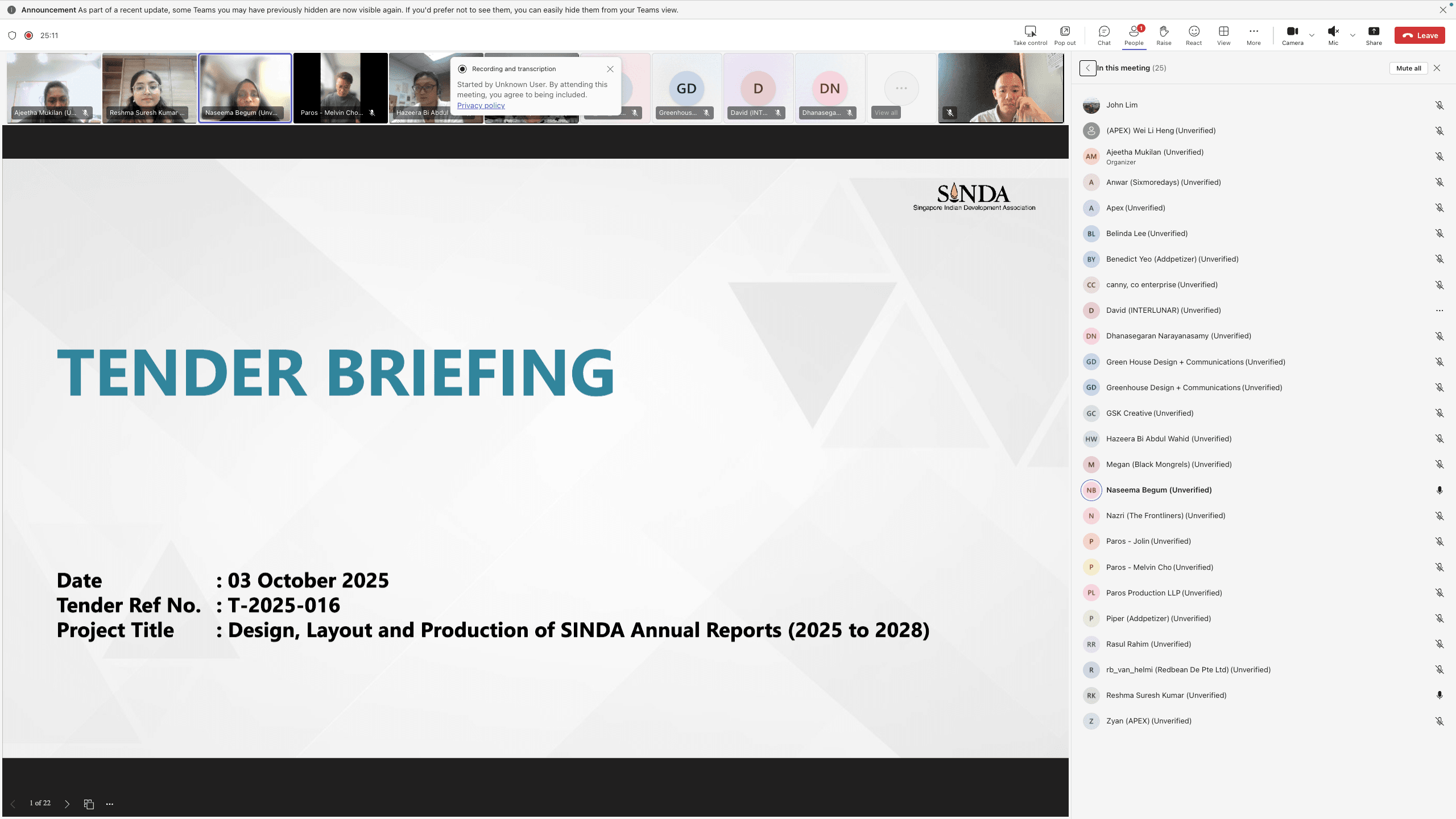 I sat in the meeting, looking at the sheer number of tenderers in the Teams call.