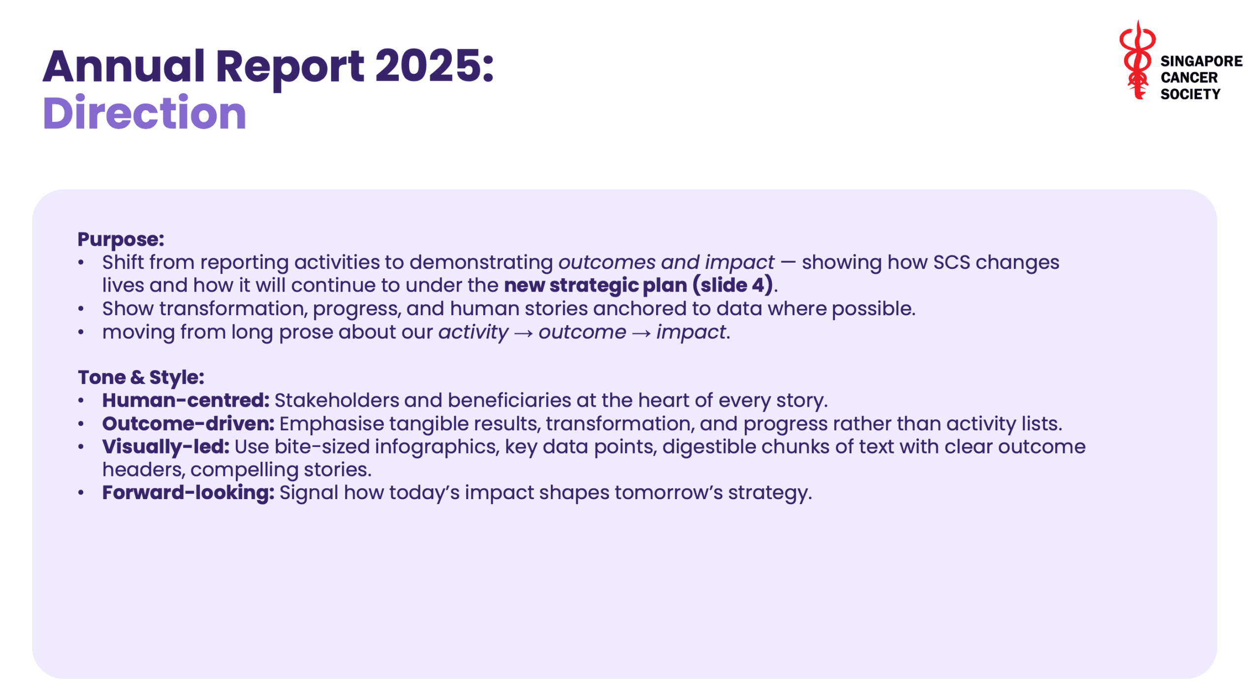 For example, one of our clients this year has been The Helping Hand, a halfway house in Singapore. We’ve ended up needing to create a shared narrative that people can galvanize around.