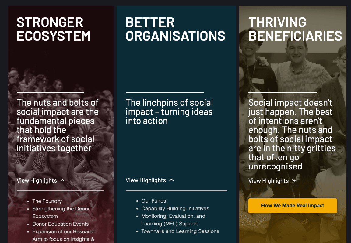 Because yes, all of the programmes at your charity are important, but in a time-starved Singapore, we often just don’t have time to go through the long preamble.